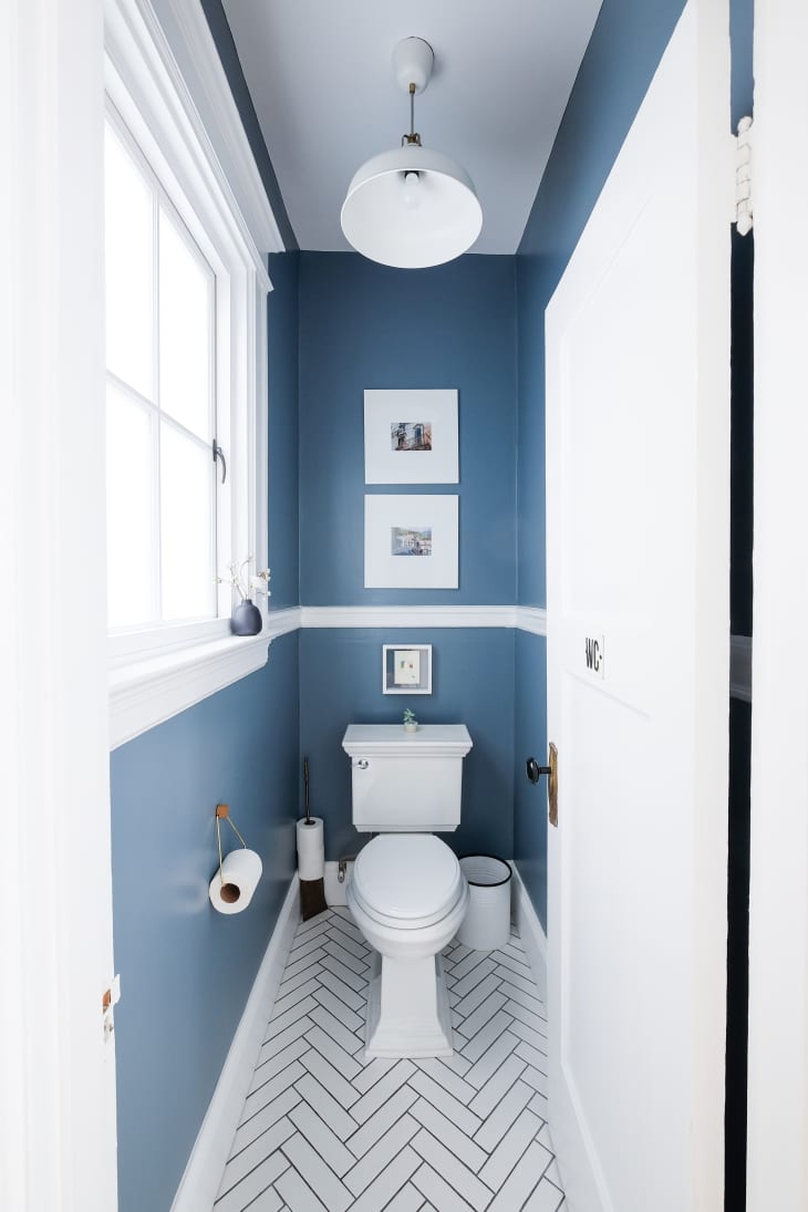 In this case the owner opts for periwinkle and white an on-trend color scheme to exert zen-like impacts on the bathroom. Ad Save on Navy Blue Bathroom Look. Lewis Schoeplein architects.